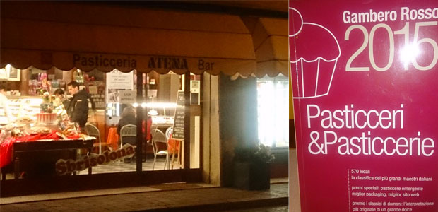 Nella foto la Pasticceria Atena e la guida Gambero Rosso 2015 esposta nel locale