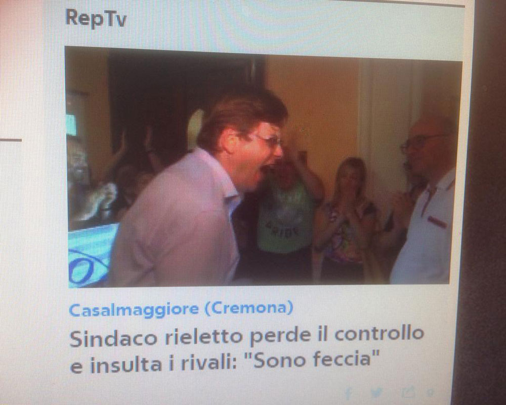A riprendere quel discorso, per la verità molto pacato e anche umano nella prima parte – con il grazie ai genitori e ai sostenitori per averlo supportato per l’intera campagna elettorale – erano state le telecamere di Cremona 1, con l’operatore Ivan Russo, e alcuni dei sostenitori dello stesso sindaco di Casalmaggiore rieletto mediante smartphone. Nessuno però immaginava che quello sfogo potesse finire su tutti i principali media nazionali. Il Fatto Quotidiano, Il Corriere della Sera, La Repubblica, Open di Enrico Mentana, anche la trasmissione “Tagadà” di La7, senza dimenticare – nella cifra più comica e ironica della faccenda – “Ciao Belli”, storica trasmissione di Radio Deejay, che visto il mezzo ha potuto al massimo fare ascoltare l’audio.