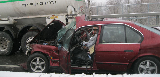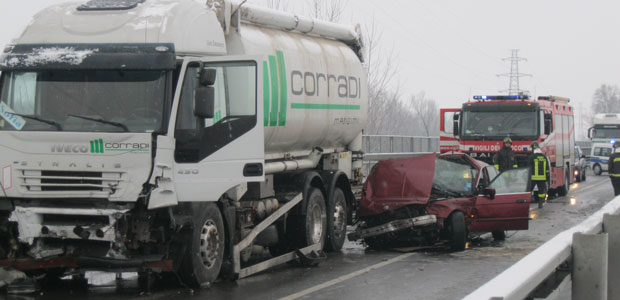 Una Bmw targata Mantova, modello 525 Td, colore rosso, guidata da A. S., 44enne di origine rumena, mentre viaggiava da Casalmaggiore in direzione Parma, sul ponte sul Po, strada Asolana sp 343, ha sbandato forse anche a causa del ghiaccio che rendeva l’asfalto scivoloso e si è scontrata con un camion della Mangimi Corradi che procedeva nel senso opposto.