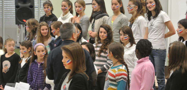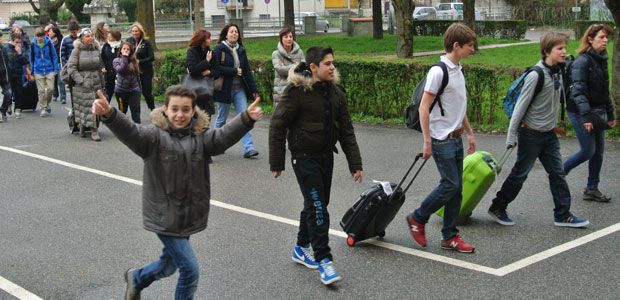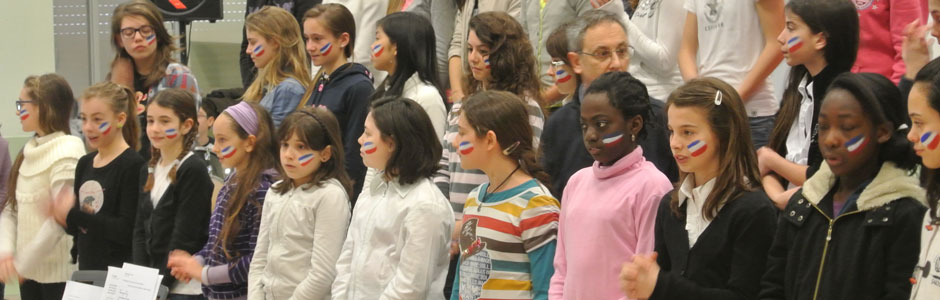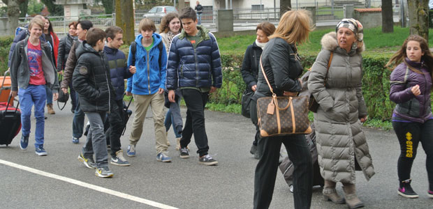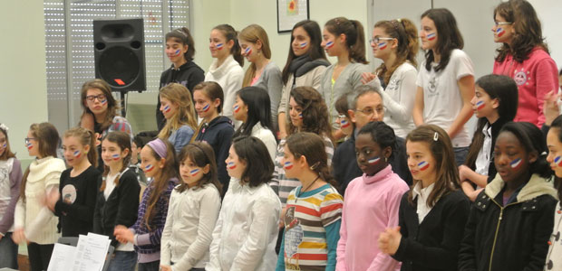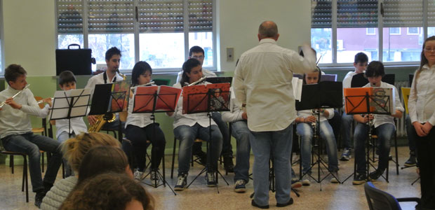 Dopo essere scesi dal pullman, i 29 studenti, tutti di età compresa tra i 13 e i 14 anni, sono saliti al secondo piano della scuola media Diotti, dove il comitato di accoglienza, guidato dalla professoressa di inglese Daniela Romoli, ha regalato loro una bella sorpresa. Un coro di sole ragazze, tutte con la bandiera olandese dipinta su una guancia, ha infatti intonato cori di benvenuto seguendo i suggerimenti del maestro Palmiro Froldi, mentre la piccola banda della scuola, diretta da Daniele Marasi, ha avuto l’onore di esibirsi per prima, suonando l’inno olandese e subito dopo quello italiano, in un’ideale abbraccio musicale.