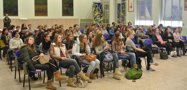 “Here we are”, “Eccoci” ha poi esordito Daniela Romoli, che ha provveduto a illustrare il programma della cinque giorni (da domani a sabato mattina, con visite significative a Genova e Venezia): come già scritto in precedenza (vedi link a fondo pagina) questa visita è una sorta di rendez-vous, che segue la settimana passata dai ragazzi casalesi (31 in tutto) in Olanda pochi giorni fa.