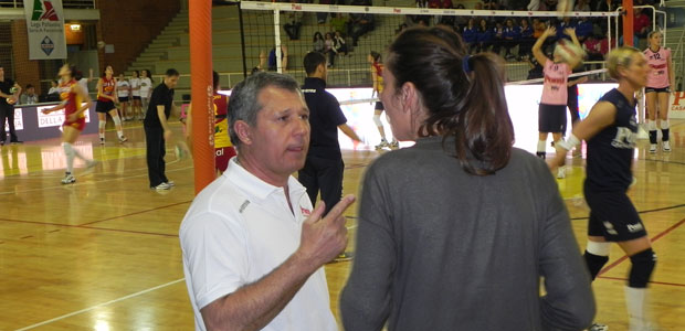 Nella foto la tensione Pomì nel pre-gara del PalaFarina: Cuello parla con il ds Conde