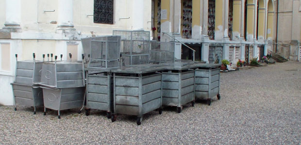 Prima a Casalmaggiore e nelle frazioni si trovavano cesti omnicomprensivi di alluminio, peraltro senza sacchi, dove veniva buttato di tutto, dai fiori, alla carta, ai cerini, eccetera. Oggi questi stessi cesti sono stati raggruppati e accantonati in un angolo del cimitero, in attesa di essere rimossi e magari riciclati (già che siamo in tema) in altri settori.