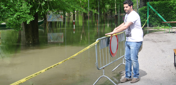 Alessandro Schiroli, gestore del locale, quando attorno alle ore 11.30 ha verificato che il livello dell’acqua, che già aveva invaso la vicina zona golenale, continuava a salire, s’è lasciato andare ad un’esclamazione che era tutta un programma: “Quanto mai non ci siamo spostati nel parcheggio”. Già, perché il “casottino” de La Baia era stato preventivamente spostato, la sera del 30 aprile, dal luogo in cui si trova normalmente allo spiazzo davanti all’ingresso secondario e laterale degli Amici del Po. Il parcheggio, che si trova qualche metro più indietro rispetto al fiume, sarebbe stato più sicuro.