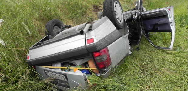 Nella foto, la Fiat Tempra ribaltata nel fosso a lato della sp59