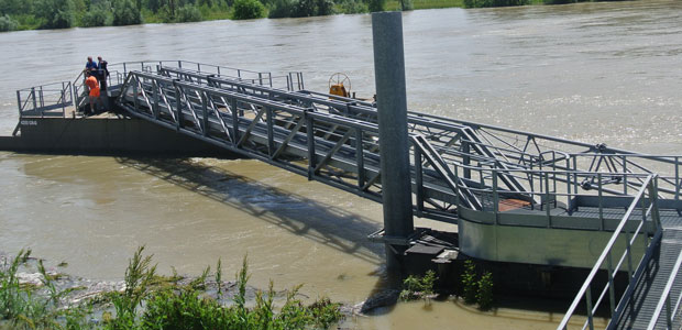 Nella fotogallery il livello del Po lunedì e l’intervento per la messa in sicurezza dell’attracco