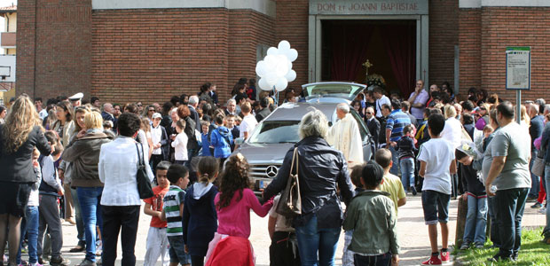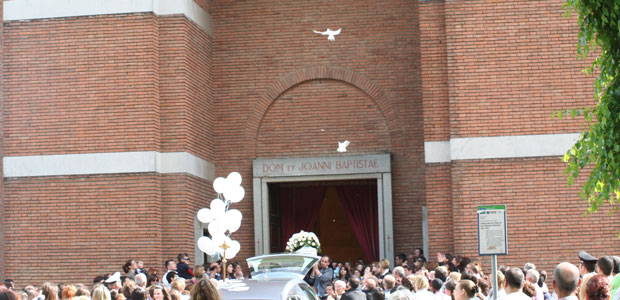 Due candide colombe hanno salutato l’uscita dalla chiesa della bara con la salma del piccolo Raffaele Tangari, scomparso all’età di soli 11 anni domenica 12 maggio in un incidente sull’autostrada A14.