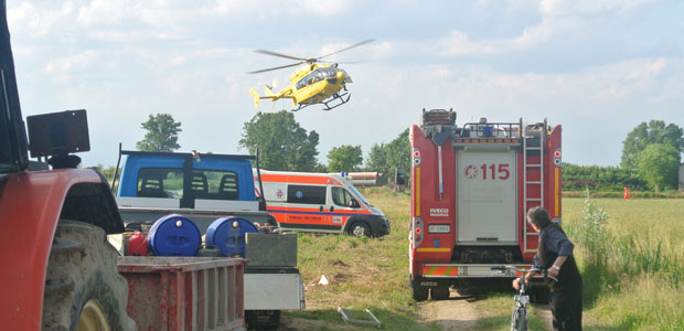 Inutile l’intervento dell’elisoccorso di Bergamo. L’incidente è avvenuto in via San Lorenzo. Sul posto anche un’ambulanza, i vigili del fuoco e i Carabinieri di Rivarolo del Re e l’Asl Lombardia.