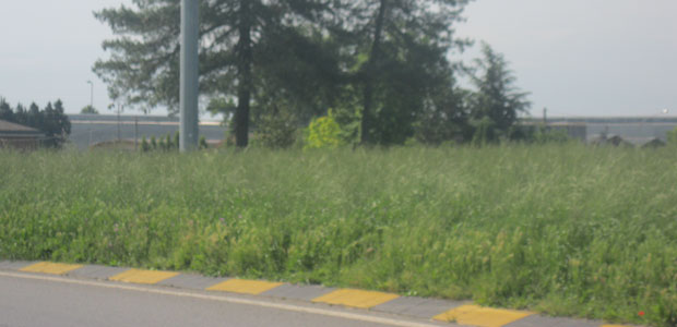 Nella foto, l’erba delle aiuole della rotonda a Po ha ormai raggiunto l’altezza delle auto