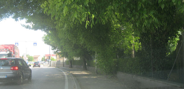 A questo vanno aggiunte le fronde degli alberi che sorgono nei pressi di un condominio prima della Rotonda Conad. Così sporgenti da costringere la gente ad un pericoloso passaggio sul marciapiedi.
