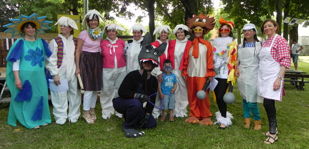 Nella foto, educatrici e genitori con indosso i costumi di scena