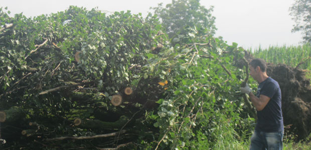 A Martignana di Po la furia dell’evento meteorologico ha assunto le sembianze di un’autentica tromba d’aria passando accanto ad alberi che ha sradicato come fossero fuscelli e lasciandone altri intatti in una specie di incredibile, beffardo e incomprensibile slalom. Il vento, la pioggia e la grandine hanno letteralmente “aspirato” le coperture dei nuovissimi gazebi installati da poco più di un mese presso il giardino estivo del ristorante martignanese “Miami”.