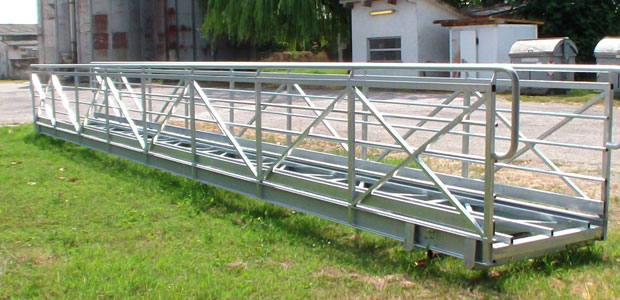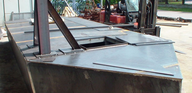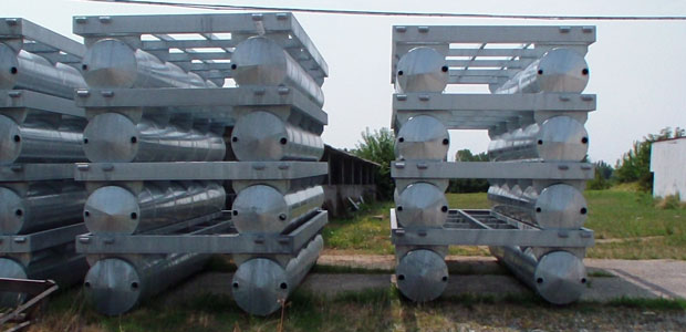 Abbiamo fotografato le varie parti che comporranno l’attracco da diporto. Si trovano, al momento, a Quattrocase, frazione di Casalmaggiore che, con la ditta Italian Zeta, ha avuto l’onore e l’onere di limare, saldare e sistemare ferro e acciaio zincato fino ad arrivare alla forma oggi visibile. Un pontone di testa, riconoscibile per la forma a punta, un pontone di sbarco che sarà collegato alla passerella (anche questa già pronta), quindici zatterini (o pontiletti) già zincati per i posti barca. Ora, vederli sull’erba o sul ciglio delle stradine di Quattrocase fa un po’ sorridere: presto però saranno un’opera, si spera, utile, anche per il rilancio turistico del Grande Fiume. L’ingegnere civile Secondo Visioli di Casalmaggiore mostra i disegni e spiega che tutto è stato calcolato al millimetro: “Abbiamo valutato il ribasso in posizione di magra, che servirà raggiungere per fissare l’attracco, e il rialzo in posizione di piena e abbiamo calcolato che ogni pontiletto, formato da due galleggianti e dalla griglia che li unisce, “pescherà” in acqua (ovvero andrà sotto) per 25 o 27 centimetri, a seconda del peso dell’acqua spostata. Io ho curato il progetto, che è stato poi confermato dall’ingegnere navale Carmelo Leonardo Telesca: questo perché un ingegnere civile non può, per la motorizzazione, avere l’ultima parola. La relazione è stata depositata in Provincia e ora un collaudatore farà iscrivere i pontoni di testa e di sbarco”.