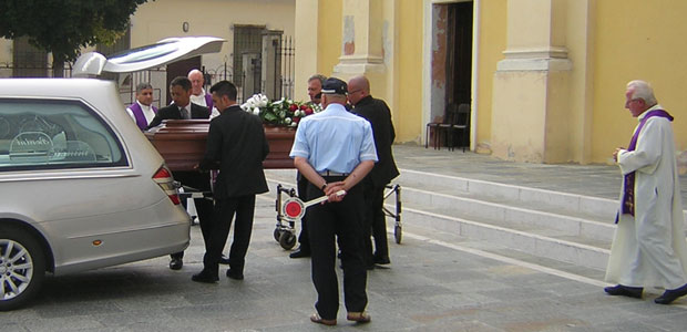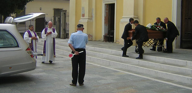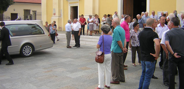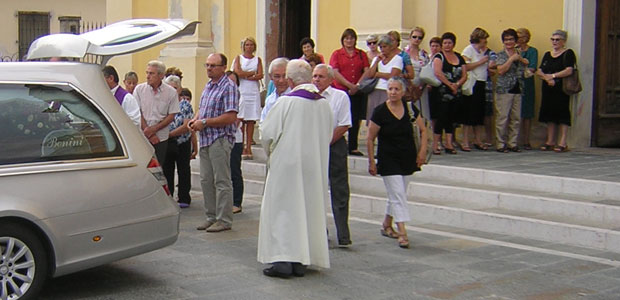 Nella foto, la bara che si accinge a raggiungere Martignana e don Umberto Leoni