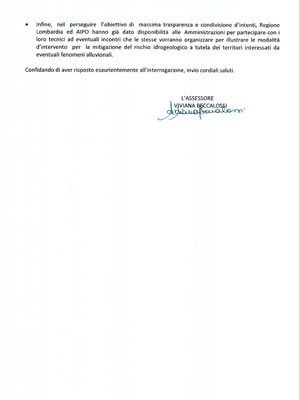 Viste le responsabilità della Provincia e di AIPO nella manutenzione dell’argine e del Comune di Viadana nei controlli per impedire il transito di mezzi pesanti, si invitano tali enti a rendere pubbliche le serie misure tempestive per la messa in sicurezza del manufatto.