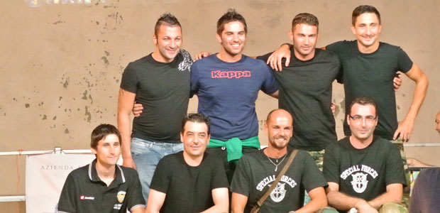 Finale calcistico: il Real Castefranco ha festeggiato l’anno di vita, presentato dal presidente Gianmaria Zanoletti, che ha dato lustro all’ottavo posto ottenuto all’esordio l’anno scorso (parliamo di calcio a sette) e ha presentato i giocatori ad uno ad uno (ma il bomber Bellini, cannoniere assoluto del torneo con 44 centri, era assente). Presente anche la mascotte, un cane di uno dei giocatori. Anche qui momento di commozione e applausi dinnanzi al ricordo di Andrea Iori, giovane piadenese che si cimentò con calcio, basket e soft air e che è scomparso in un incidente stradale nel settembre 2011.