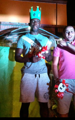 A trionfare nell’edizione 2013 di “Mister Gamba” sono stati due esponenti del Basket Oglio Po, alla Torretta per celebrare il sesto anno di vita: al 1° posto si è infatti classificato Andrea Darko, al 2° il coach Walter Parazzi, mentre il 3° posto è andato a Matteo Mossini, premiati poi sul palco da Tonon e Adorni. Andrea Darko potrà gustarsi il Pizzetto, il salame col filetto tipico di Torricella.
