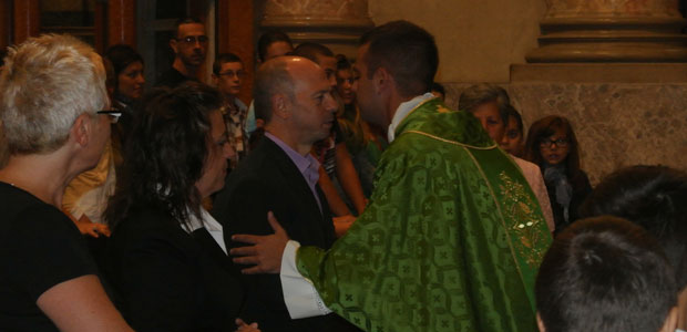 Particolarmente toccanti due momenti: la sfilata, durante l’offerta, dei più giovani parrocchiani, alcuni dei quali, senza doni, hanno comunque voluto stringere la mano al nuovo arrivato. Poi lo scambio del segno della pace, con don Marco che è sceso dall’altare per salutare con un abbraccio i suoi genitori.