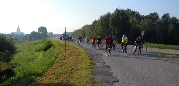 Per cominciare, lungo l’anello della piazza, sono state esposte dalle 8 alle 20 le bancarelle del mercato di alta qualità che hanno creato con Casalmaggiore un connubio ormai da un paio d’anni in occasione delle feste importanti e “di popolo”. Alle 8.30 poi è partita la cosiddetta Biciclettata della Zucca: 22 iscritti (2 euro il costo, gratis i ragazzi fino a 14 anni) hanno preso parte al percorso sull’argine, partito dal Lido Po e poi, sempre adocchiando le bellezze della golena, proseguito per Santa Maria, Fossacaprara, Roncadello e Co dè Bruni. Al rientro sosta-aperitivo presso l’Acli Roncadello e poi arrivo a Casalmaggiore. Durante il percorso Lucio Godi, Giorgio Milanesi e Piercarlo Gardani hanno illustrato storia e bellezze delle chiese di Santa Maria, Fossacaprara e Co dè Bruni. Le Gev hanno collaborato per il servizio d’ordine, mentre la ditta ItalianZeta di Quattrocase ha fatto da “scopa”, chiudendo la fila e raccogliendo eventuali bici guaste. Piccolo fuoriprogramma: una ragazzina è stata protagonista di una lieve caduta dalla bici, per fortuna senza conseguenze e senza bisogno dell’intervento dei sanitari.