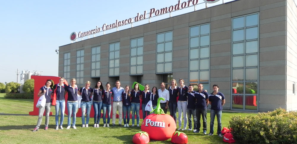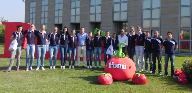 La Pomì in visita alla Pomì. Meglio: il team rosa del volley maggiorino, alla vigilia del primo campionato di Serie A1, ospite giovedì mattina nella sede del Consorzio Casalasco del Pomodoro, a Rivarolo del Re. Così, giusto per essere chiari, considerato che il medesimo marchio identifica due eccellenze del territorio: l’una produttiva, l’altra sportiva.