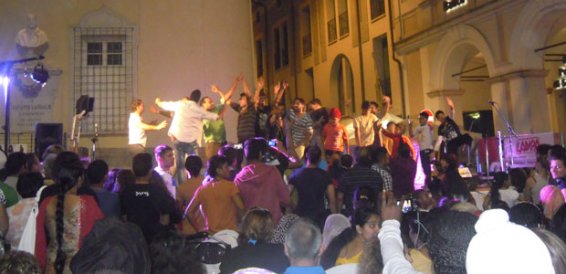 Viadana ha assunto improvvisamente tutto un altro aspetto sabato sera grazie alla Festa dei Popoli, allestita davanti al Palazzo Municipale. Sotto il palco si sono riuniti gruppi di africani, indiani e moldavi formando un’unica coloratissima marea di gente. In misura inferiore la presenza degli italiani, tanto è vero che le due presentatrici hanno promesso che il prossimo anno non ci si sarebbe dimenticati di mettere in piedi anche uno stand di viadanesi.