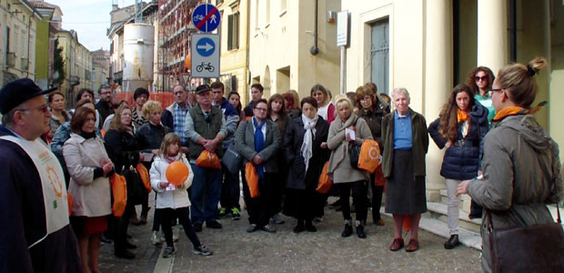 La FaiMarathon ha abbracciato nel pomeriggio di domenica una settantina di persone e un cane, che come gli altri ha indossato il simbolo arancione della giornata di promozione del patrimonio monumentale di Casalmaggiore. Non sono mancati all’appello il sindaco Claudio Silla, con bimba al seguito, e l’assessore alla Cultura e all’Istruzione Ettore Gialdi, che lungo via Benedetto Cairoli, mentre i ‘maratoneti’ raggiungevano la prima tappa, il teatro comunale, ha confessato: “Fra poco potremo visitare anche Palazzo Martinelli. Questione di poche settimane. Siamo ormai agli sgoccioli coi restauri”.