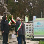All’uscita dalla chiesa, sempre scortate dall’Estudiantina, le due corone sono poi state trasportate davanti al monumento ai Caduti dell’Isola Bella, dove l’Inno di Mameli e il Silenzio hanno risuonato in un’atmosfera molto composta. La corona è stata posata con il saluto del sindaco Claudio Silla, poi il corteo, passando dalla piazza Garibaldi (con piccolo disguido dovuto ad un filo elettrico che penzolava dall’alto ed è stato alzato per permettere alla folla di poter procedere senza pericolo), è arrivato in comune. Le giostre della Fiera di San Carlo si sono fermate al passaggio della seconda corona di fiori, depositata dopo la parte iniziale della scalinata del municipio.