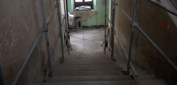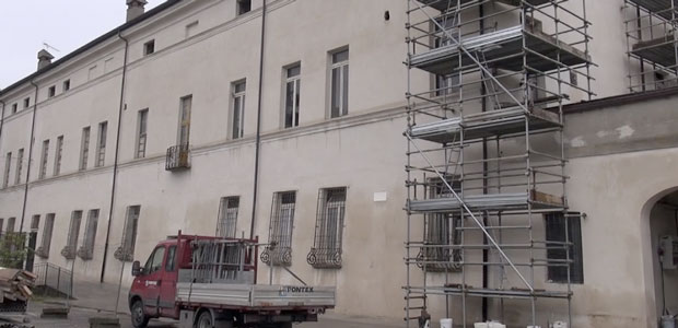 Ora però è lo stesso palazzo abbaziale a necessitare di cure. “Anche qui” precisa don Alberto “operiamo in condizioni di urgenza”. Il palazzo, infatti, nella sua parete esterna ha subito una spinta e una brutta inclinazione verso l’esterno (verso il campo da calcio, per capirsi, o verso le cucine, ragionando sul lato corto del perimetro). “Per questo siamo intervenuti per “stringerlo” con fasce di carbonio che saranno inserite sui quattro lati”.