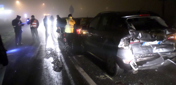 La prima auto a frenare, a causa dello stop improvviso del camion che la precedeva e probabilmente anche della scarsa visibilità causa nebbia, procedeva come le altre in direzione Casalmaggiore, una ventina di metri prima del distributore Agip (che è poi stato gentilmente concesso dal gestore per raccogliere le auto e sgomberare la strada): una Toyota Rav 4 è stata tamponata dal una Fiat Stilo blu, colpita poi a sua volta da una Lancia Ypsilon. A quel punto è sopraggiunto F. L., il più sfortunato nella carambola perché, a bordo della sua Renault Kalos non è riuscito a evitare l’impatto e soprattutto è stato centrato in pieno da un camion Man, che ha chiuso il tamponamento, provocando un forte colpo alla schiena del guidatore della Kalos.