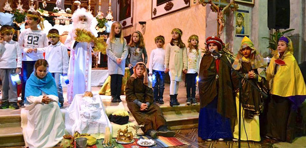 Hanno partecipato alla rappresentazione 23 ragazzi del catechismo, coordinati dalle catechiste Vittorina LombardiMaria Enrica LambriLina Cornelli, Clarissa CortelliniSuor Emilia, che hanno proposto al pubblico numerose scene recitate, alternate da alcuni brani natalizi, eseguiti dall’insegnante di chitarra Tiberio Panzi e dai vari Ferniani, Capelli, Donati, Guarneri e Scomparin. Al termine dello spettacolo il parroco Natalino Tibaldini ha impartito la benedizione a tutti i presenti ed ha consegnato un piccolo riconoscimento ai bambini che hanno realizzato il presepe nelle proprie abitazioni.