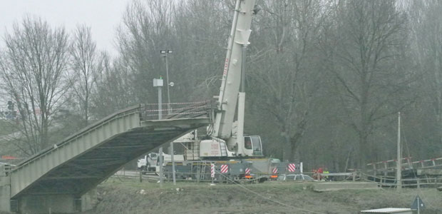 Sul posto, oltre agli operai della Provincia di Mantova, sulla sponda di Cesole è stata installata anche una gru della Danese, che ha aiutato a vincere la resistenza del fango, per recuperare il pesante pontile, realizzato sì in legno ma con una parte sottostante in ferro, dunque difficilissima da sollevare. A osservare i lavori era presente anche l’assessore ai Lavori Pubblici del comune di Viadana Adriano Saccani, che si era speso in prima persona nei giorni scorsi per chiedere una deroga al Patto di Stabilità, in modo da poter sistemare completamente il ponte, senza accontentarsi di lavori di manutenzione straordinaria.