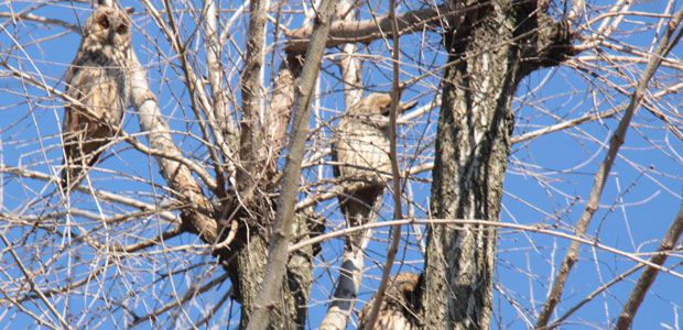 E’ molto probabile che i gufi siano visibili ancora per le prossime settimane, dato che questi animali, che nidificano tra marzo e maggio, da dicembre a febbraio trascorrono le proprie giornate sullo stesso albero dal quale s’involano la sera, per andare a caccia, per poi disperdersi solo con l’arrivo della primavera.