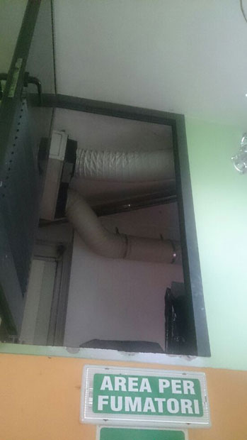 La sala principale del Punto Snai, quella adibita a scommesse, con tanto di tv e registratore di cassa (che il titolare svuota ad ogni chiusura), non sembra essere stato preso di mira dai ladri, che nei loro acrobatici movimenti interni al locale hanno lasciato tracce evidenti. Orme di scarpa (si presume di marca Adidas) sono state trovate sui muri e su di uno sgabello probabilmente utilizzato a mo’ di scaletta per risalire il condotto di areazione e fuggire. Non solo: anche un passamontagna è stato ritrovato all’interno dell’esercizio.