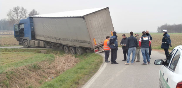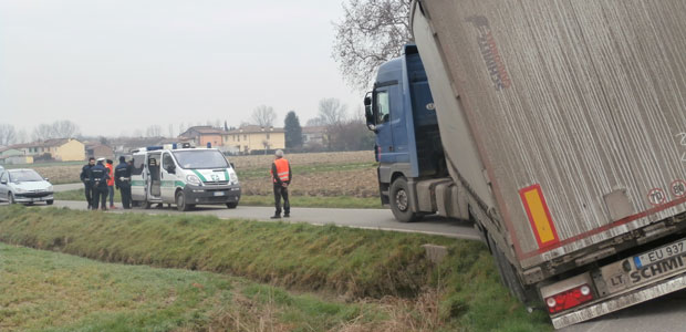 CASALMAGGIORE – Strada bloccata martedì mattina tra Motta San Fermo e Cappella, frazioni di Casalmaggiore, per l’uscita di strada di un grosso autoarticolato straniero finito con le ruote nel fossato. Il mezzo, un Tir Mercedes condotto da un autista lituano che non parlava italiano e diretto all’azienda agricola Bacchi, stava percorrendo la stretta via di comunicazione (chiamata anticamente strada delle pietre) quando nell’affrontare una curva è finito dentro al fossato senza più riuscire a muoversi.
