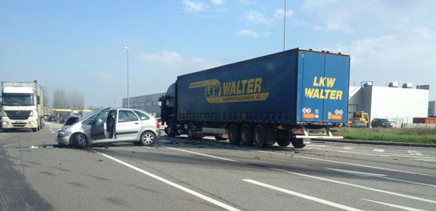 Scontro tra auto e camion