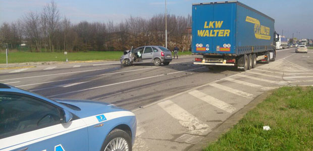 CASALMAGGIORE – Incidente spaventoso lungo la strada Sabbionetana a Casalmaggiore, venerdì intorno alle ore 13,20. Uno scontro, tra un autoarticolato con targa tedesca ed una Citroen Xsara Picasso, che avrebbe potuto avere conseguenze tragiche per i guidatori. Il camion procedeva da Casalmaggiore in direzione Sabbioneta, mentre l’auto, proveniente dal sabbionetano, stava svoltando a sinistra, verso via Galluzzi. Proprio all’altezza dell’incrocio è avvenuta la collisione, che ha fatto roteare l’auto per una quindicina di metri. Nessun altro veicolo transitava in quell’istante: scongiurato quindi un sinistro ben più grave, in un orario in cui quell’arteria stradale è particolarmente trafficata. Due le persone coinvolte: un ragazzo 25enne di origini romene, M. C. di Voghera, al volante del camion, e una 35enne, V. D., anch’ella di origini romene alla guida dell’auto (risultata di proprietà di un connazionale) trasportata in ospedale in seguito al violento urto. Sul posto è accorsa un’ambulanza della Padana Soccorso in codice rosso: ad avere le conseguenze più preoccupanti l’autista, che è comunque rimasta cosciente ed è stata condotta presso il pronto soccorso dell’Oglio Po in codice verde, quindi in condizioni non gravi.