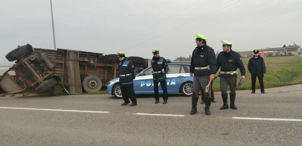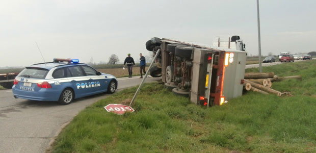 In seguito alla manovra il rimorchio si è piegato sul lato destro rovesciando tutti i tronchi d’albero che trasportava in un campo adiacente all’altezza della strada per Ponteterra. Dopo aver svolto i rilievi la Polizia stradale di Casalmaggiore ha provveduto a deviare i mezzi per Sabbioneta-Viadana da un lato e sulla rotonda di Casalmaggiore dall’altro. La viabilità è stata quindi regolata grazie all’ausilio dei Carabinieri di Sabbioneta e della Polizia locale di Casalmaggiore. A recuperare il mezzo è giunto sul posto un camion con una gru mandato da una ditta di Pontevico.