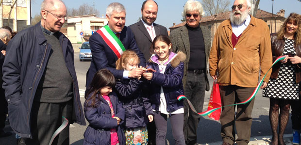 All’uscita dalla Nidek Fir, i presenti si sono diretti alla rotatoria Diotti, per l’inaugurazione dell’opera di Brunivo Buttarelli installata “alla porta della città” (Silla dixit). Resa possibile da due mesi e mezzo di manodopera offerti dall’artista alla comunità di Casalmaggiore, la spilla-monumento è un dono che il Lions Club ha fatto alla cittadinanza. “Una comunità non ha identità se non ha coscienza delle proprie radici”: così il presidente della sezione casalese del Lions, Roberto Asinari. “C’era una storia da raccontare”, ha detto poi l’artista casalese Buttarelli, che ha reso una spilla di 5 centimetri un monumento di cinque metri ora simbolo di Casalmaggiore città del Bijou. Il momento, senza dubbio, più atteso della giornata, con la benedizione di don Alberto Franzini, parroco di Casalmaggiore, è arrivato poco dopo mezzogiorno: a quattro giovani mani di due bambine l’onore del taglio del nastro. Perché il Bijou, a Casalmaggiore, ha oltre un secolo di vita ma intende mantenersi giovane.