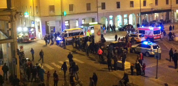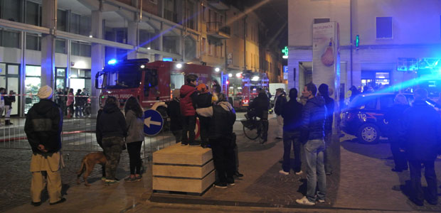 Sul posto in breve tempo si sono portate tre ambulanze, una auto medica, due auto dei Carabinieri, una della Polizia Municipale e tre mezzi dei Vigili del Fuoco. Sul luogo del sinistro sono giunti anche il sindaco Penazzi, tanti assessori (il primo è stato Nicola Federici, che si trovava in zona a fare jogging) e consiglieri comunali e soprattutto centinaia di viadanesi che si sono riversati soprattutto nella limitrofa piazza Manzoni. Molti hanno postato la notizia, con foto, su Facebook, dando il via ad un vasto tam tam che ha condotto nuova gente in piazza. I vigili del fuoco hanno impiegato poco tempo a domare le fiamme, ma il vero problema è dato dal fumo che, “schiacciato” dal porticato, fatica notevolmente a salire, creando un odore acre in tutta la zona. Per questo motivo la piazza è stata transennata dalla polizia locale, che dovranno ora mettere in sicurezza la zona assieme alle altre forze dell’ordine presenti.