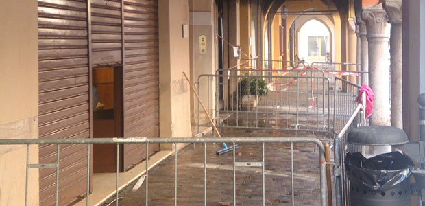 Giovedì mattina i portici nei pressi del luogo dove si è verificato il corto circuito apparivano puntellati, con le transenne che impedivano il passaggio dei pedoni. Quella che adesso si può chiamare l’ex macelleria equina appare come un profondo buco nero senza più alcuna connotazione, con le vetrine sciolte dal calore, un moncone di quello che era il banco di vendita e tutto il resto cenere grigia e nera sul pavimento. Liquefatti completamente anche i pezzi di carne da cavallo esposti nel negozio e di cui non è rimasto più nulla. Solo un vaso di terracotta è rimasto in piedi, troneggiante nel suo colore giallo. I Vigili del Fuoco, peraltro, sono dovuti intervenire anche nella mattinata di giovedì, perché da una cappa usciva ancora fumo nero. Un intervento rapido di messa in sicurezza. E intanto l’odore acre del fiume si sentiva ancora, ancora a oltre 12 ore di distanza dal fattaccio.