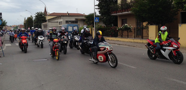 GUSSOLA – Non poteva bastare un cielo plumbeo e il rischio di pioggia per guastare il cuore dei centauri, arrivati a Gussola per rendere omaggio al grande Angelo Bergamonti, al quale il Motoclub casalasco da 43 anni ormai dedica il proprio motoraduno. Un’edizione speciale, quest’anno, perché diluita su tre giorni, approfittando della festività del 25 aprile caduta di venerdì e chiusa domenica 27 con il momento clou.