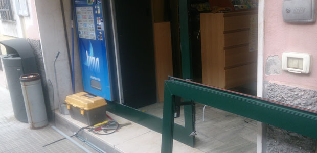 Il colpo è riuscito mediante una Audi A4 nera, che è stata utilizzata, più che come ariete direttamente, come perno per infilare una trave nel bel mezzo della vetrina principale della tabaccheria: il vetro antisfondamento, infatti, lasciava poco spazio a tentativi diretti di buttarlo giù e così i ladri hanno pensato di fare forza alla base della porta, per scardinarla. Così è stato e infatti ai danni derivati dal furto si aggiunge anche quello relativo ai lavori di sistemazione della porta che, nell’urto, ha però pure il vetro (uscito dai suoi solchi ma rimasto integro). A rompersi è stata invece una delle vetrinette da esposizione, colpita dalla trave e dalla porta scardinata.