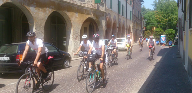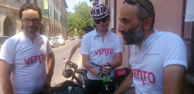 Il tempo per essere accolti sull’argine ad Agoiolo dai responsabili di Gasalasco, per arrivare in via Baldesio e applaudire la zona slow, per spiegare ai giornalisti che sul progetto Vento sono stati fatti passi avanti, per salutare il neo sindaco Filippo Bongiovanni e il neo assessore (ma già impegnato nello stesso ruolo a livello provinciale) Giovanni Leoni, con i quali il dialogo ha toccato temi concreti, di finanziamenti e di aggiornamento su quanto è stato fatto fino ad ora. Infine per un aperitivo rinfrescante presso il vicino Barbis, siesta meritata prima di rimettersi in moto. I sette partecipanti, guidati dall’ingegnere Paolo Pileri, responsabile scientifico di Vento, tutti legati al Politecnico di Milano, cui si deve lo studio del progetto, sono partiti mercoledì mattina da Cremona e, passando dall’argine, arriveranno in serata a Boretto. Il loro viaggio (60-70 km al giorno in bici) proseguirà fino alla foce del Grande Fiume.