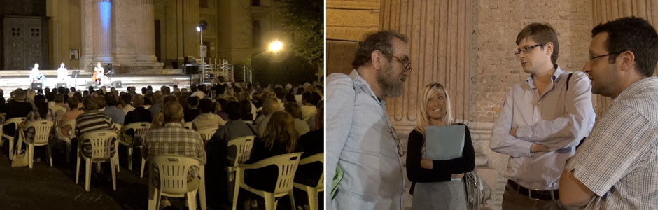 Covatta, che ha soggiornato in una struttura del centro cittadino, ha spiegato di essersi fatto a piedi i trecento metri circa che lo separavano da piazza Marini e si è complimentato per la bellezza del listone e delle vie del centro storico. Infine, in una chiacchierata informale a fine spettacolo, il comico si è lasciato andare ad una confidenza: una stoccata nemmeno troppo velata a Silvio Berlusconi e Beppe Grillo. “Io faccio quello che hanno sempre fatto i giullari di una volta, che erano gli unici a poter scherzare sui problemi senza rischiare di essere impiccati dal re. Il ruolo del comico è sempre stato questo: il vero ‘bordello’ si è verificato quando il re ha iniziato a fare il comico ed il comico a fare il re”.