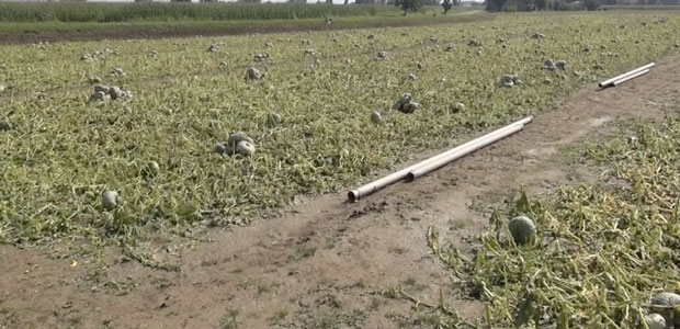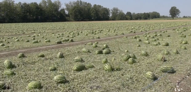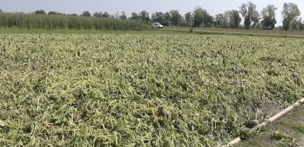 Sembra quasi che, hanno spiegato gli agricoltori, il maltempo voglia terminare l’opera di dodici mesi fa, quando pochi campi vennero risparmiati dalla furia di acqua, vento e grandine ed ora vengono invece colpiti in pieno. Colture di mais completamente defogliate (dunque più facilmente attaccabili da funghi e batteri) quando non spezzate, quintali di zucche, meloni e angurie da buttare, vitigni stroncati con i primi grappoli, ancora acerbi, che non potranno crescere, pomodori staccati dalle piante, alcuni già maturi ma destinato a marcire perché colpiti dai chicchi di grandine, altri invece ancora verdi perché da poco seminati.