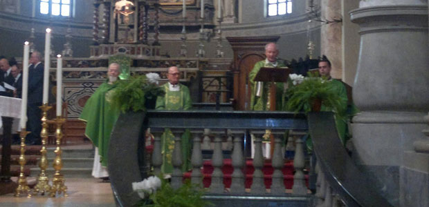 CASALMAGGIORE – L’arrivederci al parroco di Casalmaggiore, arrivato come don 17 anni fa e ora in procinto di ripartire come monsignore per iniziare la sua avventura nella Cattedrale di Cremona, è iniziato sabato sera e ha raggiunto il suo picco emotivo con l’ultima messa di domenica alle 11. Monsignor Alberto Franzini ora, se mai avesse avuto dubbi, sa che potrà contare sulla preghiera di molti fedeli, a giudicare dalla chiesa gremita sia nella serata di sabato, con il concerto di saluto organizzato da alcuni parrocchiani, dai sacerdoti e dai ragazzi dell’oratorio, sia nella celebrazione domenicale, dove l’ormai ex parroco di Santo Stefano e San Leonardo (parrocchie unite da poco più di un anno per volere del vescovo di Cremona monsignor Dante Lafranconi), è stato accompagnato dal vicario don Marco Notarangelo, da don Bruno Galletti, da don Angelo Bravi e da Padre Bruno Signori, che ha portato il saluto del Santuario della Madonna della Fontana. Curiosamente don Alberto celebrò la messa d’ingresso in Santo Stefano proprio il 21 settembre 1997, dunque esattamente 17 anni dopo lascia l’incarico per approdare in Duomo a Cremona.