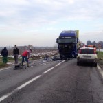 Sul posto, oltre all’auto medica del 118 e ad un’ambulanza della Padana Soccorso, sono intervenuti i Vigili del Fuoco di Cremona, una pattuglia della Polstrada di Casalmaggiore, i Carabinieri di Sospiro. Secondo una prima ricostruzione, il tamponamento sarebbe stato causato da un’auto che stava svoltando verso Ca de’ Caggi, e che ha costretto a frenare il primo camion, condotto da V.R. 41 anni, di origine romena, al lavoro per una ditta trentina. Il secondo camion di colore blu-giallo, che ha tamponato la Peugeot, era invece condotto da P.R., 45 anni, di Voghera, autista per una ditta di Pavia.