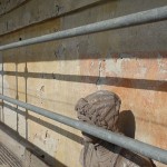 La presenza del ponteggio del precedente intervento ha permesso ai tecnici di rilevare una situazione di degrado diversificato con diffuse situazioni di gravità alla quale l’Amministrazione comunale ha deciso di dare massima priorità destinando, alla fine del 2014, le economie di spesa derivate dalla concessione di un aiuto finanziario a valere sul Fondo Regionale di Rotazione per i soggetti che operano in campo culturale. La facciata presenta limitate porzioni di intonaco originale, ma di grande interesse storico architettonico in quanto spesso riportano segni di graffiti e tracce di coloritura policroma.