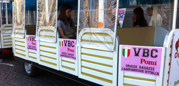 CASALMAGGIORE – Ha richiamato cinquemila persone in piazza Garibaldi a Casalmaggiore la grande festa per la Pomì, neo Scudettata nel volley femminile. Una cifra da record, difficilmente ripetuta in altri casi a Casalmaggiore sopra il “listone” della piazza, con la piazza che si è via via gremita, dalle 18.45 in poi, con il picco massimo attorno alle 19.30 quando le ragazze di Davide Mazzanti e lo stesso tecnico sono arrivati da via Cavour, alcune a bordo di biciclette e altre in corteo. Un evento storico per la comunità maggiorina, che ha bissato la festa di domenica mattina al rientro da Novara, in Cortile Federici II a Cremona: le atlete rosa sono state accolte da alcune gigantografie, lasciare scorrere dalle finestre del comune di Casalmaggiore, per eternizzare questa impresa. La piazza, un oceano rosa di cori ed entusiasmo, non ha mancato di fare alzare i decibel.