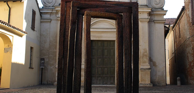 Le opere di Lanfredini danno nuova risonanza a questi luoghi, ne ristabiliscono la centralità e le uniscono alle chiese che ancora mantengono intatto il loro valore cultuale e culturale: il Duomo e San Francesco. Per queste chiese Lanfredini ha scelto opere intense, dall’alto valore simbolico, in sintonia con la sacralità del luogo: Oltre la soglia, Tempio, Culla del vento, Grata e Approdo. Il percorso prosegue verso Sabbioneta nella chiesa di Motta San Fermo, luogo di riconoscimento di una piccola comunità. Anch’essa margine, segna il passaggio da un comune all’altro,mala continuità del territorio, al di là dei limiti amministrativi, è suggeritada Soglia precaria, collocata in questa chiesa e dall’opera Tre assi installata sul sagrato del Santuario di Vigoreto.
